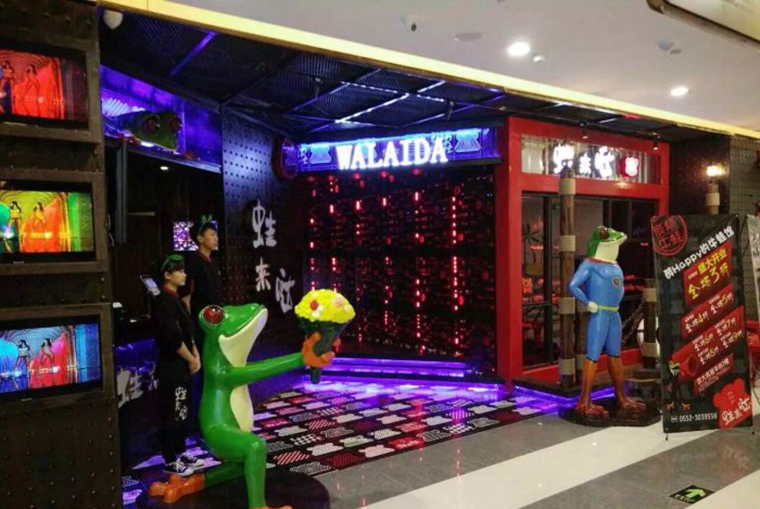 空間精致化,體驗(yàn)更舒適:打破目前現(xiàn)有工業(yè)風(fēng)、武俠風(fēng)偏粗獷的裝飾風(fēng)格,走更精致,更時(shí)尚的網(wǎng)紅店風(fēng)格;現(xiàn)有的蛙主題餐廳的裝飾風(fēng)格基本上是在以蛙來噠和蛙小俠、老佛爺這幾家抄襲為主,缺乏獨(dú)立的思考和創(chuàng)新能力。由于蛙來噠的創(chuàng)始人之前是做烤魚的,首家店基本延續(xù)了烤魚的工業(yè)風(fēng)裝飾,蛙來噠的空間裝飾并沒有太多的可取之處。