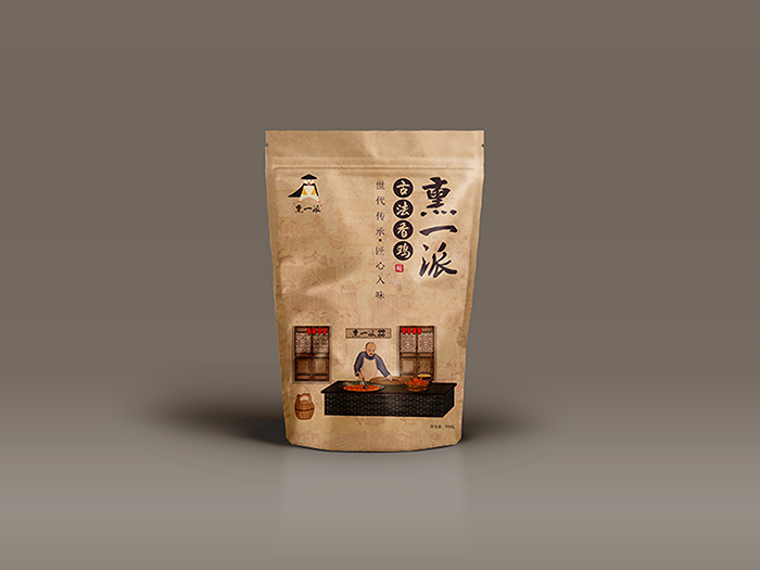 李總一開始將此香雞的做法和南方一樣,稱為燒雞。經(jīng)過我們實地考察,試吃。其實這是典型的熏雞做法。整只雞經(jīng)過長達(dá)10個小時的鹵煮,味道已經(jīng)進(jìn)入到雞肉中,瀝干水后再用冰糖熏烤,色澤紅亮,極富嚼勁。于是,我們將此香雞命名為“熏一派”,在品牌命名中直接將此雞的做法亮出來,一方面可以讓顧客一目了然,知道我們的香雞特點(diǎn);另一方面極大的降低傳播成本。且熏一派三個字簡單易懂,讀音平仄起伏,鏗鏘有力;派還有自成一派,門派之說,更表明我們立志做好的決心。
