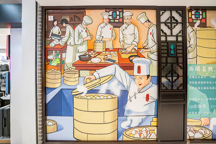轉換成一張圖畫來表達,真實具象地還原了“蘩樓鮮做”場景,讓顧客一下就記住了蘩樓鮮做的核心優勢。品深餐飲設計將此畫面應用到餐廳空間設計中,使之成為非常有效的傳播媒介。