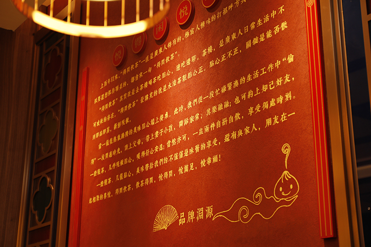 如品深餐飲設計為蘩樓創作的品牌形象插畫,目的就是為了人們記住蘩樓在廣州西關已經歷經了百年歷史。品深餐飲設計團隊當時查找了大量的歷史文獻,地方方志,以及對傳承人口頭描述的訪談記錄。用細膩的筆觸還原了蘩樓當年顧客盈門,生意興隆的經營狀況。并將此畫面置于蘩樓餐廳的主入門口,讓進出的每一顧客都能看到,從而