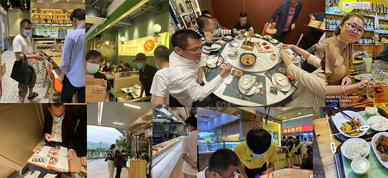 還好蘩樓團隊能理解我們的工作模式,認同我們的設計理念,尊重我們的作業流程。在我們為期半個月的市場調研及廣式茶樓同行,出產地廣州西關走訪后,才有了明確的定位人群,模式定位,出品特點,服務形式等初步的框架認識,才逐步對蘩樓的品牌歷史形成基本的認知,這時再進行“頭腦風暴”表達各自設計看法才更有了更多實際依據。隨著項目推進,與甲方的不斷溝通交流,持續的學習相關知識,我們才逐步提煉出品牌獨有的視覺語言,并把對品牌的理解進行轉譯,形成了視覺語言應用如:標志符號,品牌故事,VI視覺、海報菜單及品牌的空間形象實體呈現。