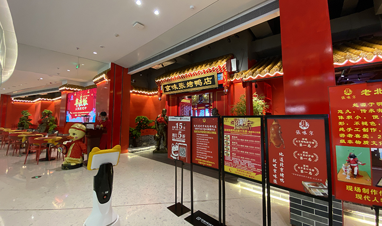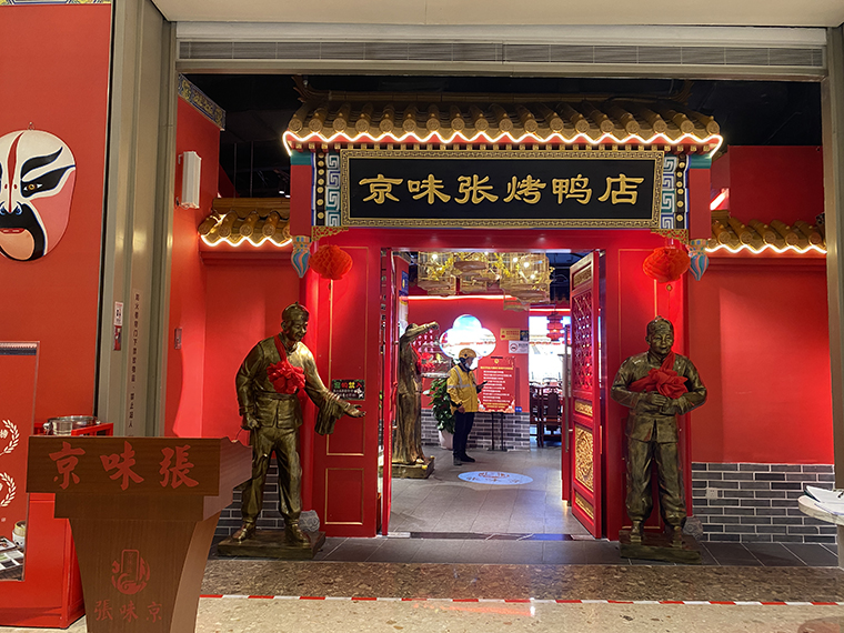 品深設(shè)計(jì)全案升級(jí)的京味張烤鴨店,是北京菜的代表品牌,整個(gè)門面采用大面積中國(guó)紅,非常鮮明,醒目。消費(fèi)者可以用一句話就表達(dá)出來(lái):整個(gè)門面全部是紅色那個(gè)餐廳。這就很好被消費(fèi)者傳播了。色彩色調(diào)搭配在門面設(shè)計(jì)、門頭設(shè)計(jì)中需要重點(diǎn)考慮,合理搭配。