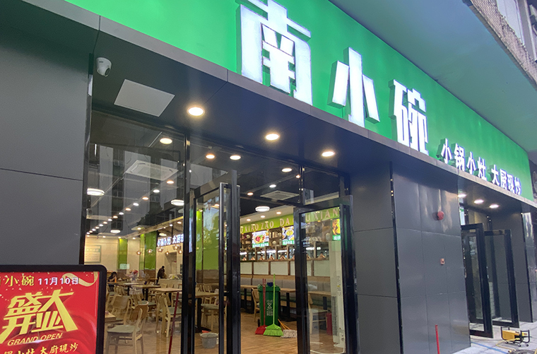 通過前期周密的市場(chǎng)考察和詳細(xì)的內(nèi)部調(diào)研,品深餐飲全案設(shè)計(jì)團(tuán)隊(duì)為南小碗提取了“小鍋小灶,大廚現(xiàn)炒”的核心訴求,并以精心策劃設(shè)計(jì)的形象畫面在門店形象中不斷放大,重復(fù),讓消費(fèi)者記憶深刻。南小碗觀瀾店位于富士康時(shí)光大道,面積230多平米,主要客群就是富士康的員工。南小碗觀瀾店裝飾一新,環(huán)境雅致,菜品新鮮,品種多樣,價(jià)格實(shí)惠,一經(jīng)開業(yè),生意火爆。