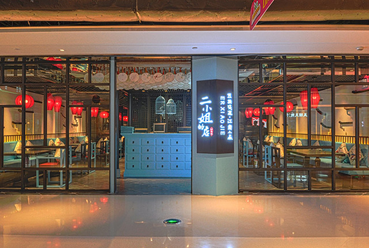 餐廳品牌形象設(shè)計(jì),在策劃階段需明確定位,LOGO形象設(shè)計(jì)清楚表達(dá)主題,店面視覺形象上吸睛,有沖擊力。如:二小姐的店,餐廳門前是一組改良設(shè)計(jì)后的藍(lán)綠色多寶格咨詢臺(tái),多寶格根據(jù)中式家具的中藥箱款式優(yōu)化設(shè)計(jì)而來。