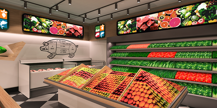社區(qū)生鮮連鎖店裝飾裝修設(shè)計(jì)、生鮮連鎖店形象設(shè)計(jì)、生鮮連鎖店軟裝燈光設(shè)計(jì)。