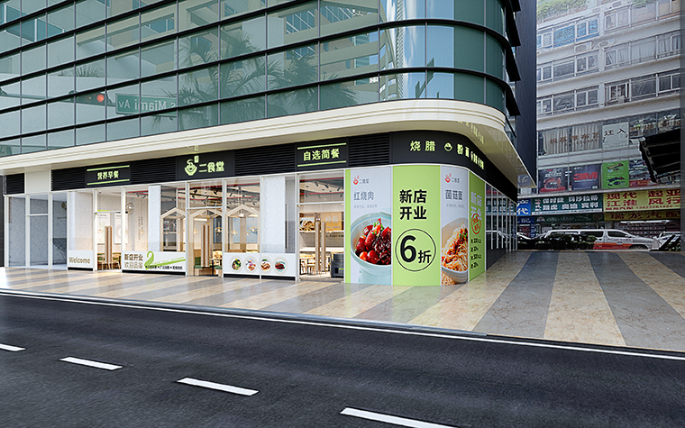 商務(wù)簡餐、現(xiàn)炒快餐空間裝飾裝修設(shè)計、快餐店門頭招牌設(shè)計、自選快餐餐線設(shè)計