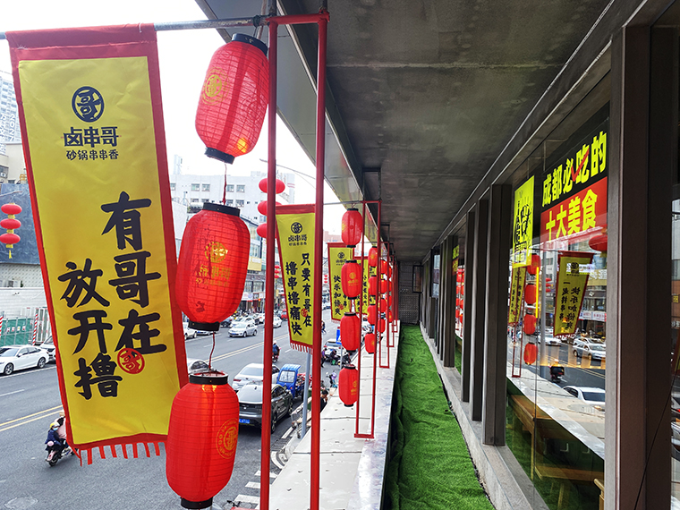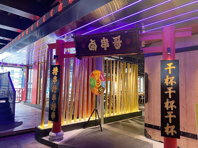 5、在鹵串哥的門店中,廣告裝飾成了門店最鮮明的一個風格。各種軟膜燈箱畫面、軟膜燈箱文案、發光字、立體字等,手繪墻,加起來100多項廣告制作,很好地增添了門店的熱鬧氛圍,傳達了品牌信息,形成了鹵串哥獨有的品牌體系,讓其他競爭者無法模仿。