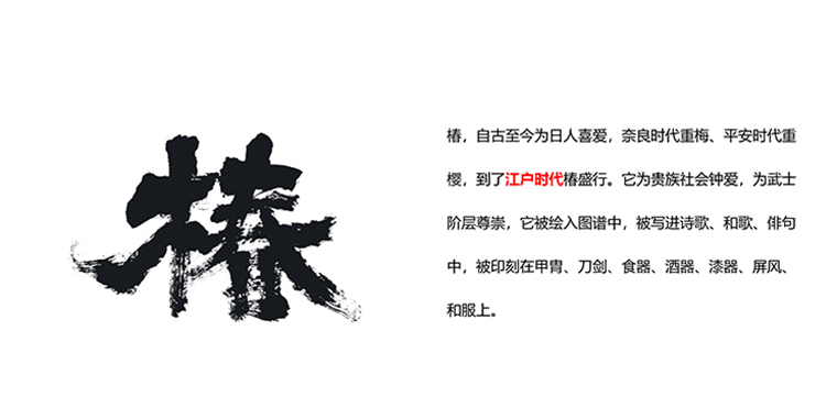 品牌的借船出海,搭文化便車(chē)。中間斷開(kāi)的線條,是玉字的變形,象征品牌典雅,精致的特性?;照轮虚g一個(gè)日本文字“椿”,精準(zhǔn)表達(dá)品牌核心名。