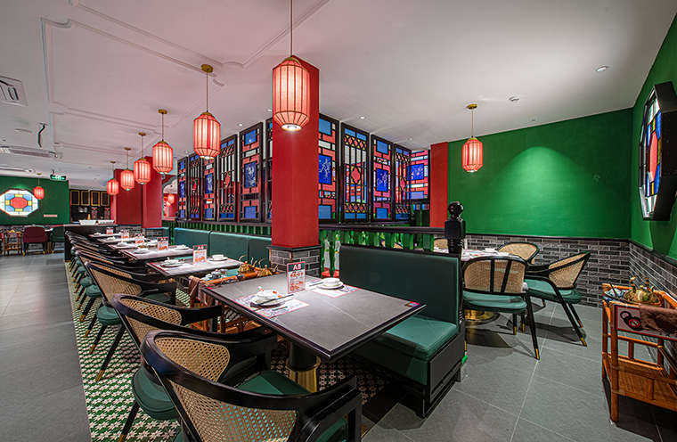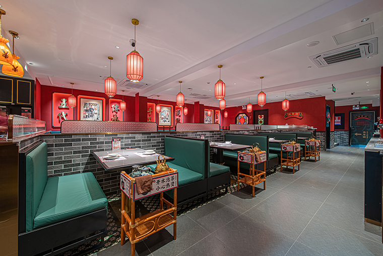 1、用品牌強關聯(lián)的具體一個元素串聯(lián)整個裝飾,形成品牌專屬識別記憶。空間中我們使用了滿洲窗,用滿洲花窗串聯(lián)整個門店,與品牌傳達的西關老號,五代傳承高度貼合,拍照打卡效果很好,老茶樓的氛圍感迅速出來了。